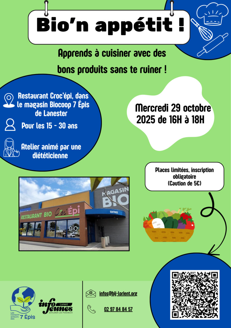 Au programme : une visite du magasin Biocoop de Lanester afin de connaître toutes les astuces pour manger bien, bio et pas chère ensuite atelier cuisine animé par une diététicienne, Sylvie Jézéquel suivi d'une dégustation conviviale avec tous les participant.es.