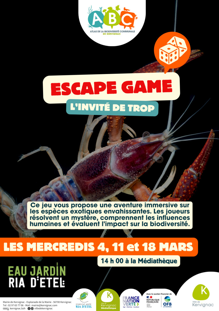 Ce jeu propose une aventure immersive sur les espèce exoitiques envahissantes. Les joueurs doivent résoudre un mystère, comprennent les influences humaines sur la faune et la flore et évaluent l'impact de l'introduction d'espèces non désirées sur la biodiversité. Cet escape-game est proposé dans le cadre du programme Eau Jardin / Ria d'Etel 2026.