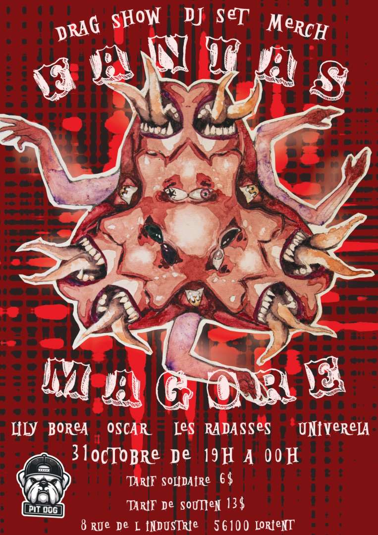 Pour célébrer les morts, les vivants et tous ceux entre les deux, retrouvons nous dans le hangar du Pit Dog pour une soirée dark, sexy et gore portée par Oscar, Univerela, Lily Boréa et la famille Radasse !