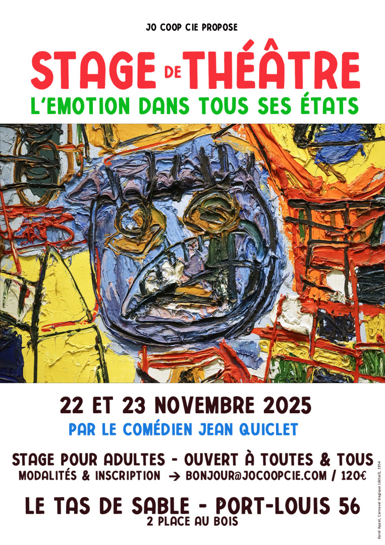 Le comédien Jean Quiclet propose 2 journées de pratique théâtrale autour des émotions.
