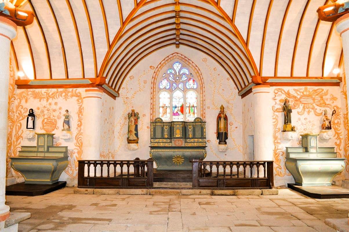 La commune de Guilligomarc’h abrite une chapelle unique dans son genre, la chapelle Notre-Dame de la Clarté de Saint-Eloi. L’édifice est construit au début du XVIème siècle et renferme un somptueux décor trichrome peint de la fin du XVIIème siècle. Un large chantier de restauration mené entre 2023 et 2025 a permis notamment de redécouvrir les décors peints et les sablières sculptées retraçant le roman de renart. Venez découvrir ce trésor caché du patrimoine !