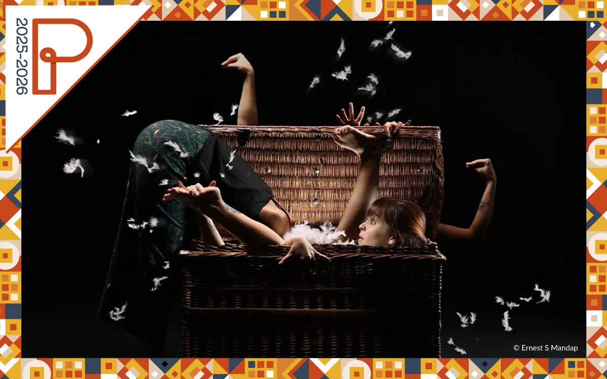 Deux danseuses filent l’allégorie de l’autruche, entre ombre et lumière, plumes blanches et plumes noires, conflit et complicité.