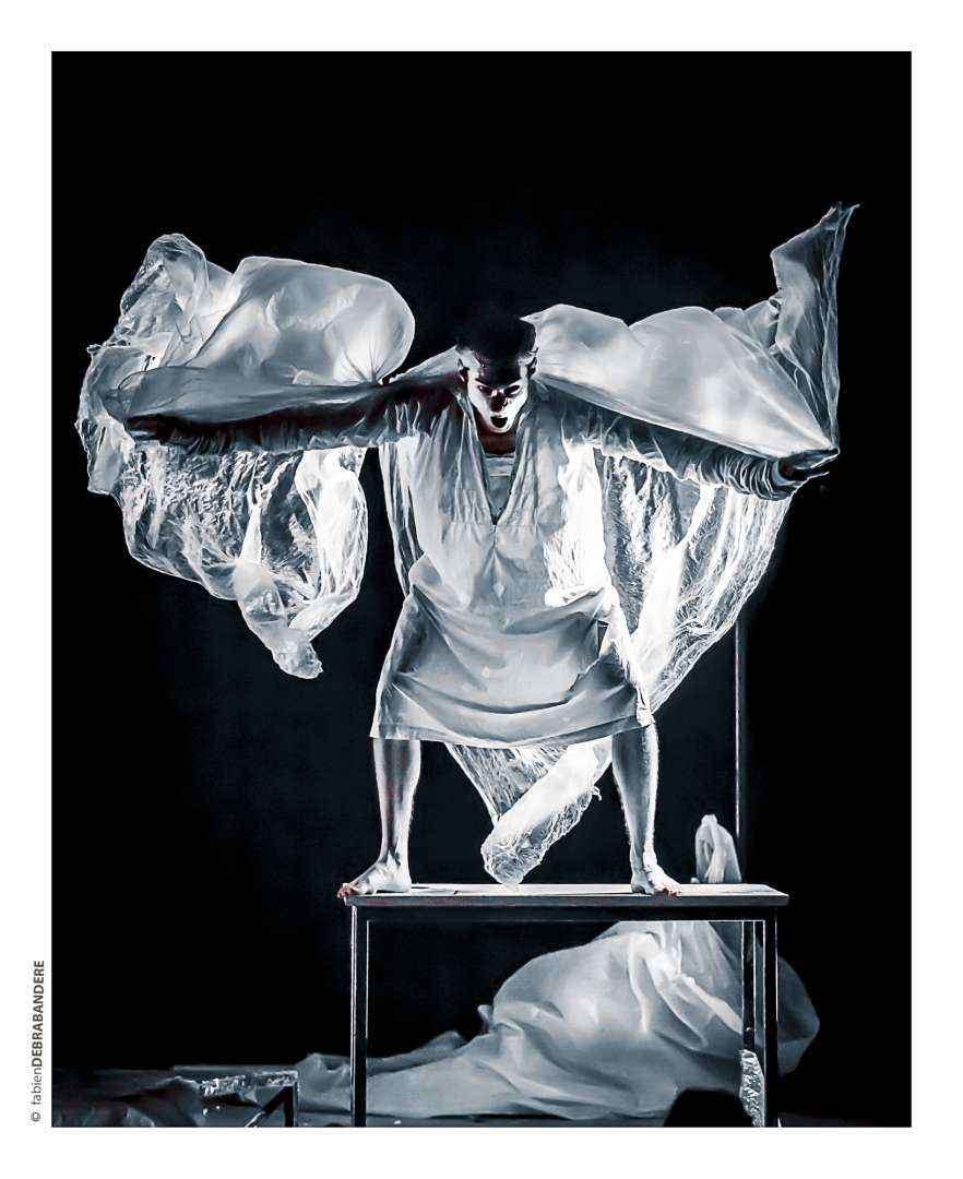 Il existe une chambre où tout est blanc. À l'intérieur de cette chambre, il y a Typhus et sa tête en désordre. Une tête pleine de fantômes qui l'accompagnent au quotidien. Il va bientôt sortir. Il le sait. Il est encore de l'autre côté mais vous n'êtes pas si loin. Il vous voit, il vous sent, il vous touche. Du bout de sa langue écorchée, Typhus va franchir une à une les barrières qui le séparent de vous. À moins que ce ne soit vous qui fassiez le chemin vers lui... Ici, tout est prétexte à rire. Même le pire. Une immersion burlesque et grinçante dans les arcanes de la folie, à la rencontre d’émotions brutes. Une ode à celles et ceux qui voient le monde différemment.