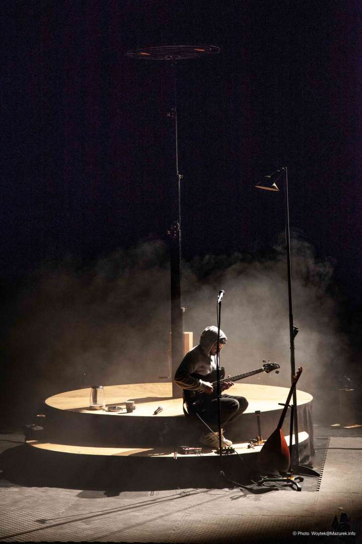 Bahoz se joue des codes culturelles de ses origines orientales, les convoque sans cesse dans sa musique, les chante avec sa voix du désert. Lui, le gymnaste des campagnes joue d’une guitare kurde en dansant sur le podium avec un costume à paillettes. Un véritable acrobate, poète, qui nous embarque pendant une heure de spectacle.