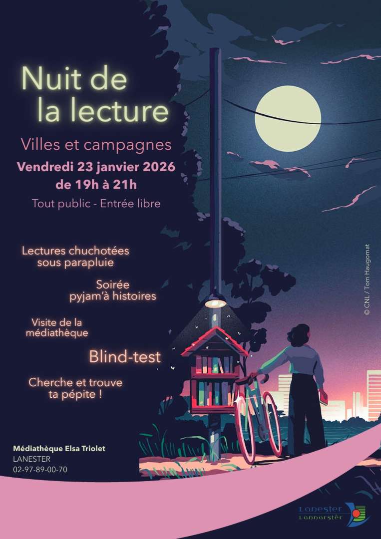 Dans le cadre de la manifestation nationale « Les Nuits de la lecture » dont le thème pour l’année 2026 est « Villes et campagnes », la médiathèque propose une programmation originale en soirée qui offrira la possibilité au public de découvrir la structure sous un angle différent et dans une atmosphère nocturne.