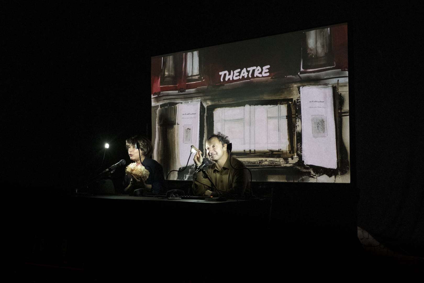 Deux comédiens jouent tous les personnages de ce polar. Polyvalents et inventifs, ils s’amusent avec les codes du théâtre et du cinéma en dévoilant les secrets de manipulation et les coulisses. Le récit se déploie en direct et à vue : on joue à se faire peur.