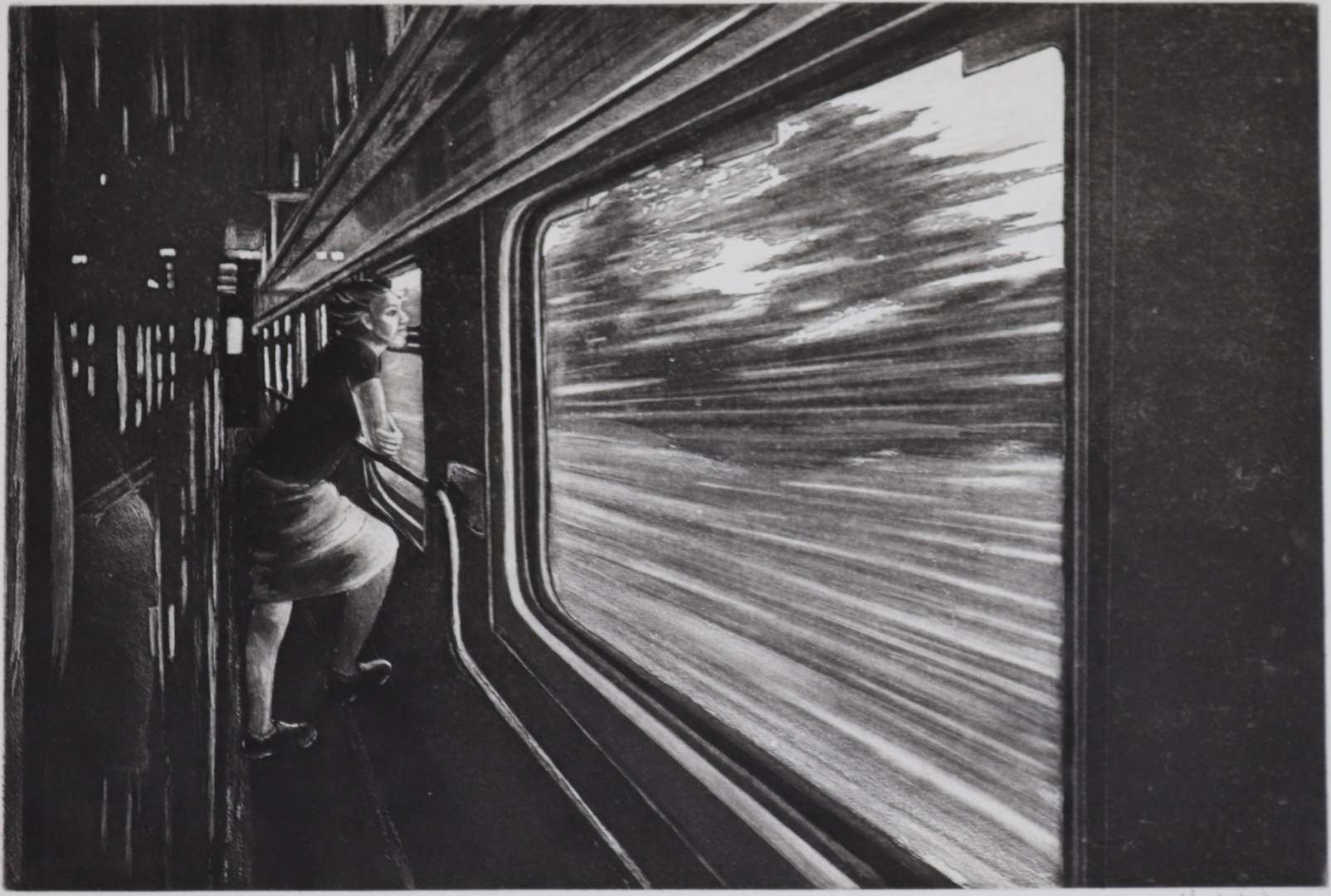 Nathalie Douillard, graveuse, aime observer les déplacements de l’homme et ses incidences sur notre vision du monde et notre environnement. S’inspirant de ses propres déplacements et des divers moyens de transports existants, l’artiste saisit ce qui façonne le paysage ou nos échanges entre humains, questionnant la mobilité qui est au cœur du processus de mondialisation.