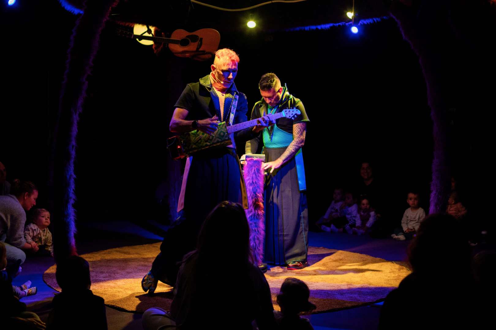 Le duo électro-pop compose des mélodies toujours aussi entêtantes, qui résonnent comme un hymne à la joie, à l’aide de guitares acoustiques et électriques mêlées à des samples et des beats électro. Un temps suspendu, un peu magique, à vivre comme une grande fête. Les chansons nous invitent à emprunter des chemins où l’on peut être fous, décalés, où l’on peut chanter et danser, rire ensemble ou juste regarder et écouter pour ceux qui préfèrent. Peu importe ce que l’on choisit de faire si cela nous ressemble et nous fait du bien.