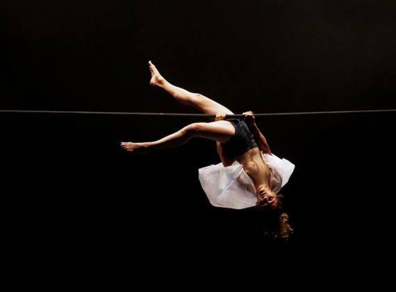 Les cordes des agrès et les haubans qui les relient dessinent un espace de lignes et d’écriture, où vibrent et s’expriment les circassiennes. Leur langage rêvé – fil, funambule, trapèze ballant – dit l’envie de lutter contre l’immobilisme. C’est une promesse de mouvement et d’émotion que formule Marion Collé dans ce manifeste poétique et politique attentif à la singularité des corps. Les sensibilités de chacune y entrent en résonance et en solidarité.